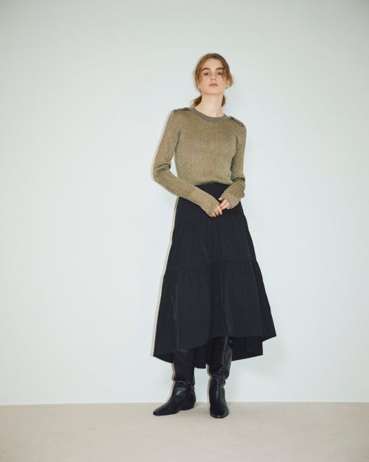 「きらめきをまとったリブ」リュクスなラメも親しみやすいエポレットつきの端正なリブニット