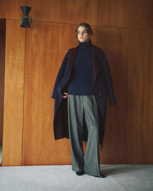 メリノタートルネックセーター(一部店舗限定) 16,000円 / リバーシブルダブルフェイスコート 50,000円