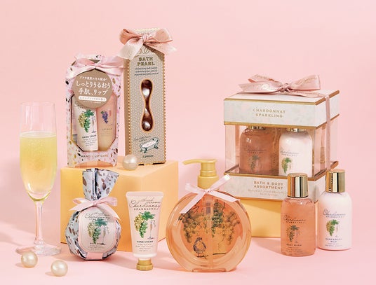果汁味あふれるみずみずしいシャルドネの香りが織りなすフレグランス&バスシリーズ『シャルドネ』は、クラシックなデザインと幸せ感じる豊かなアロマで至福のひとときを届けます。