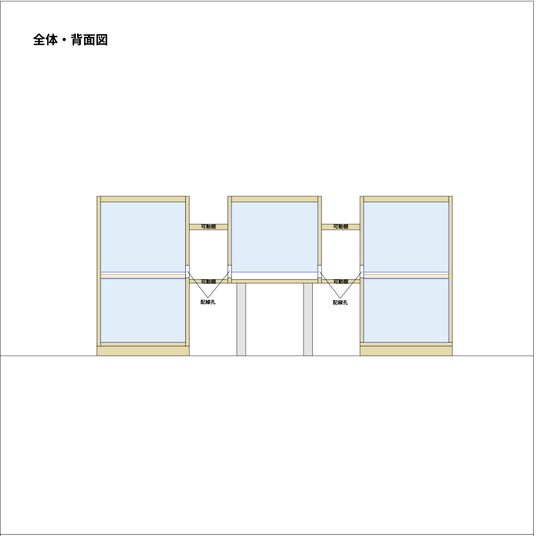 。小さな機材も設置できるよう背面には配線孔を設けています。