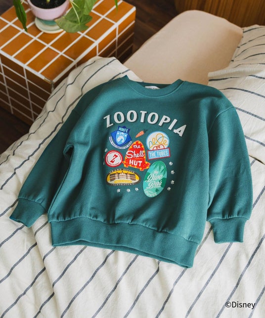 〈グリーン〉 『ズートピア』のお土産屋(マーケット)に並んでいるような、賑やかでレトロ感のあるデザインが特徴。改めてズートピアという街の多様性や魅力を振り返るとともに、『ズートピア2』で描かれる新たな舞台への期待も高まる1着です。