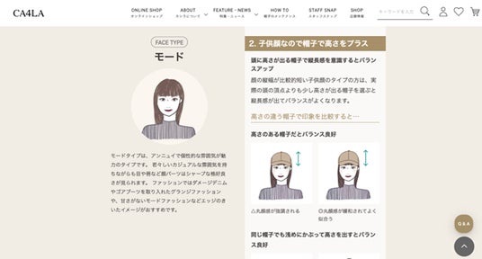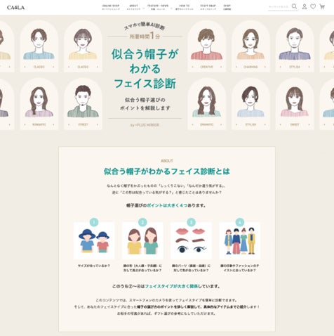 CA4LAさまでは今回のECリニューアルのタイミングで従来アンケート形式で行っていた診断コンテンツをより魅力的な体験にし、お客さまがオンラインのお買い物でも自分に似合う帽子を見つけるお手伝いができるコンテンツを作りたいという想いがありました。