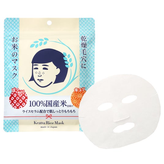 100%国産米由来成分配合の厚手でうれしい日本製シートマスク。美容液をたっぷり含んだ肌あたりのやさしいシートが、お肌にぴたっと密着。キメをふっくら整えて、指が吸いつくほどもっちりした肌に。毛穴の目立たない「毛穴無子(けあななしこ)」ちゃん肌の出来上がり。