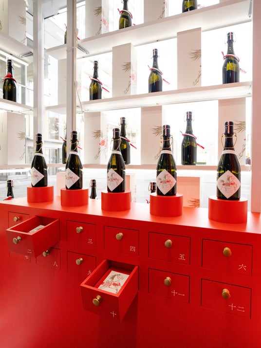 引いたみくじ棒に書かれた番号のひきだしを引くと、『百光 New Year Edition 2026』のラベルをモチーフにしたみくじ札が現れる。運勢に応じて2~5種類の日本酒の中から、お好きな商品をワイングラス(90ml)で楽しめる。