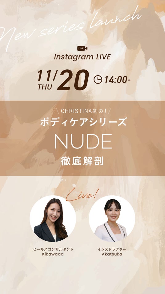 イスラエル発のスキンケアブランド「クリスティーナ」を販売する株式会社CHRISTINA JAPAN (本社:東京都品川区、代表取締役:森 翔太) は、「肌が生まれ変わる旅」をテーマに掲げた新シリーズ「NUDE (ヌード)」を本日、2025年11月20日 (木) にローンチいたします。
