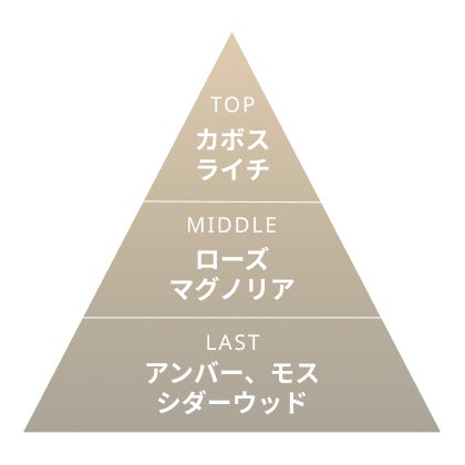 続いてリネンを連想させる優雅なマグノリアの香りが広がり、最後にどこか落ち着きを感じる、アンバーやウッドが香ることで、夜のひとときを心地よく演出します。