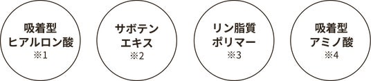 ※1 ヒアルロン酸ヒドロキシプロピルトリモニウム ※2 オプンチアフィクスインジカ茎エキス ※3 ポリクオタニウム-51 ※4 ジヒドロキシプロピルアルギニンHCl