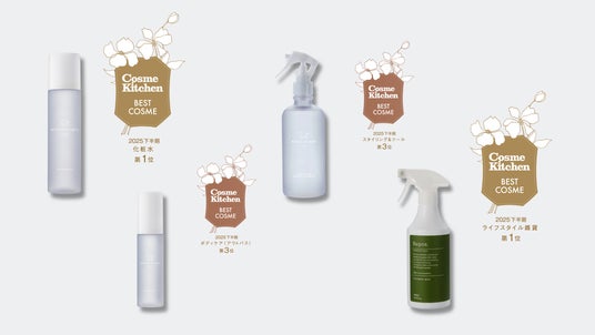 ※1※2 コスメキッチンベストコスメ 2025下半期 化粧水部門 第1位・コスメキッチンベストコスメ 2025下半期 ライフスタイル雑貨部門 第1位・コスメキッチンベストコスメ 2025下半期 スタイリング&ツール部門 第3位・コスメキッチンベストコスメ 2025上半期 ボディケア<アウトバス>部門 第3位