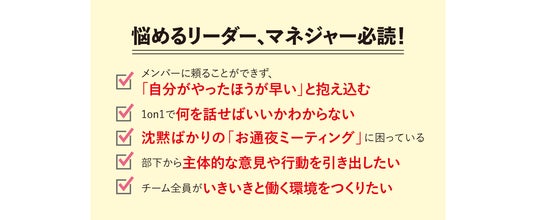1on1や会議でチームを蝕む “4つの現代病” を乗り越え、メンバー一人ひとりの創造性とポテンシャルを解放する「問いかけ」を、”3つの作法のサイクル” や ”4つの基本定石” など、誰にでも習得可能なスキル・具体的な方法論として体系化してわかりやすくまとめました。