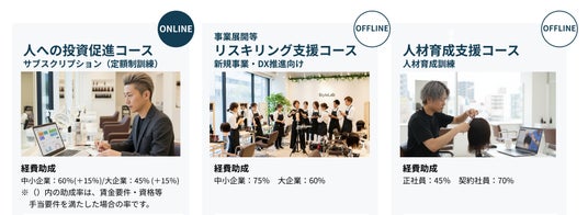 技術から接客・マネジメントまでを体系化人材開発支援助成金の活用で、最大約75パーセントのコスト削減も可能に。