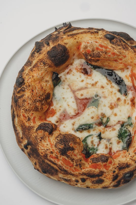 独自開発の高加水生地による、もちっとしているのにふわっとした食感。なのに瑞々しい。「ふわ・もち・じゅわ」のエアリーな一枚を、従来のピッツェリアとは異なるスタイリッシュでありながら温かみもある空間お愉しみいただけます。