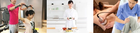 3プロメソッドは、『運動指導』『食事指導』『エステ/整体』のそれぞれの専門家が、お客様の担当となり、指導をおこないます。