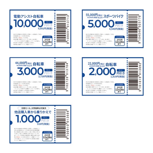 ※現金払い限定、値引きクーポン対象外です。