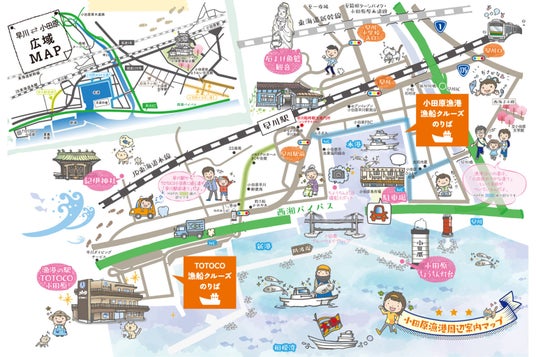 – 出港時間本港発:(1)午前10時10分(2)午前11時10分(3)午後0時10(4)午後1時10分(5)午後2時10分(6)午後3時10分漁港の駅TOTOCO小田原発:(1)午前10時40分(2)午前11時40分(3)午後0時40分(4)午後1時40分(5)午後2時40分(6)午後3時40分