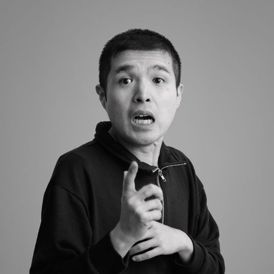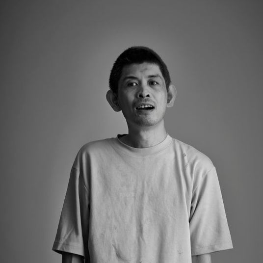2001年大分市生まれ。3歳の頃、重度知的障害を伴う自閉スペクトラム症と診断される。現在は、社会福祉法人幸福会 やまびこ広場(生活介護)に通所。ロゴマークや文字に強いこだわりを持ち、小学生くらいから好きなものを絵に起こすことをほぼ毎日行っている。描くスタイルも独特で、多動もあって常に歩き回っているが、突然座ったかと思うと描きだす・・といった予測不能の描き方をする。