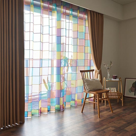 ステンドグラスレース×高機能ドレープのお洒落なカーテンセット<ステンドグラスレースセット>¥15,200~ (税込)