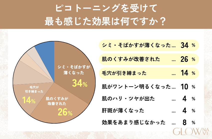 複数回通ってから実感した(14%) という人もおり、ピコトーニングの「継続で効果が積み重なる」特徴が反映された結果となっています。