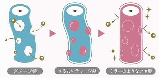 ツヤ×補修×質感再整※2の全方位密着チャージ※8により、傷んだ髪内部のゆがみとキューティクル