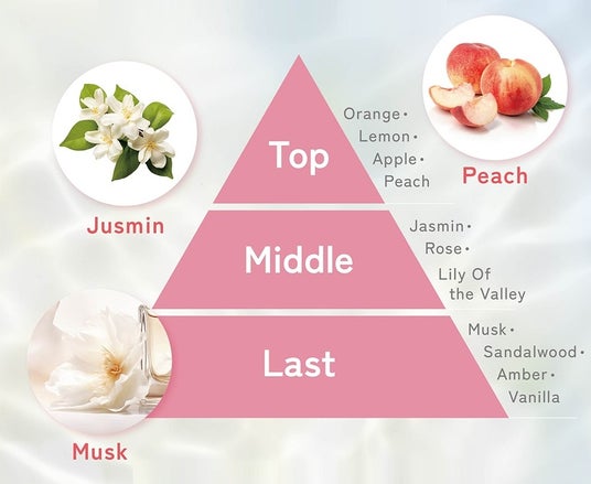 みずみずしいフルーツとやさしい花のレイヤー。ふわっと甘く、すっと透明感のある香り。