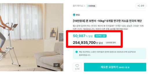 韓国では単一プロジェクトで2.5億ウォン(約2,700万円)を達成