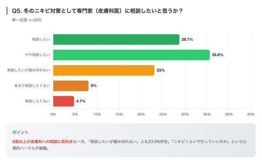 Q5. 冬のニキビ対策として専門家(皮膚科医)に相談したいと思うか?