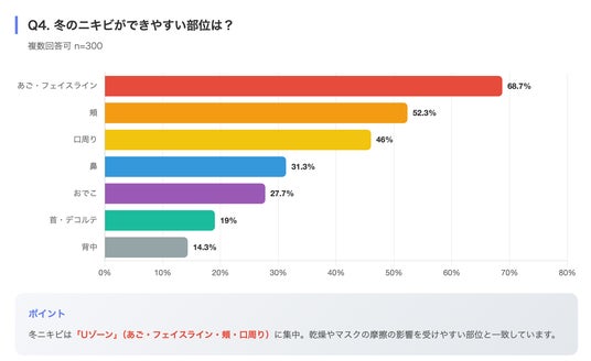 Q4. 冬のニキビができやすい部位は?(複数回答可)