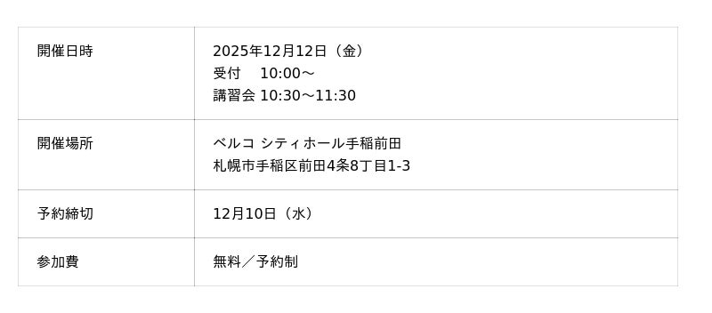 【第1回】12月12日(金)シティホール手稲前田 開催