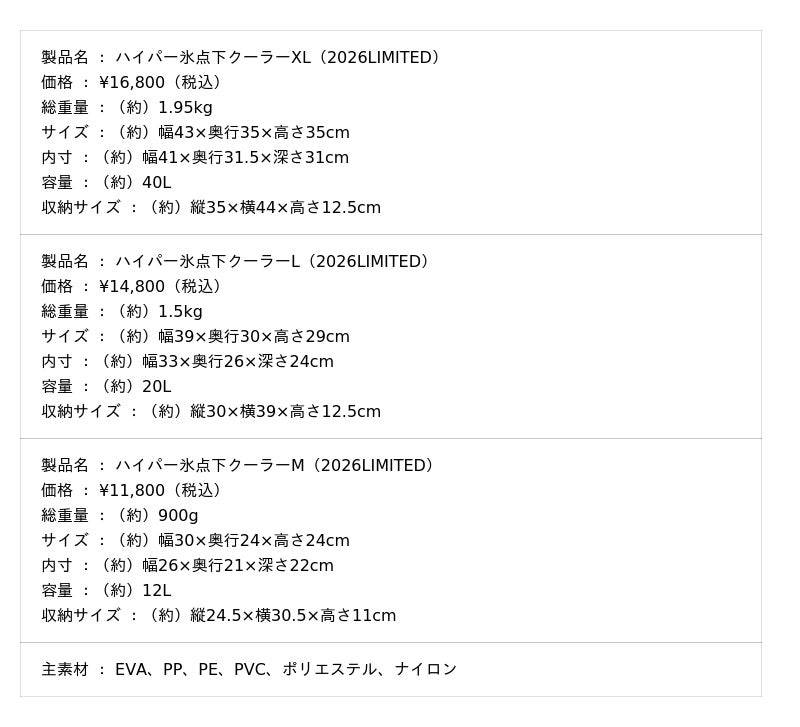 ブランド設立40周年を記念した数量限定のLIMITEDモデルの「ハイパー氷点下クーラー(2026LIMITED)」3サイズを、アウトドアやスポーツ観戦、買い物など、様々なシーンでぜひともご活用ください。