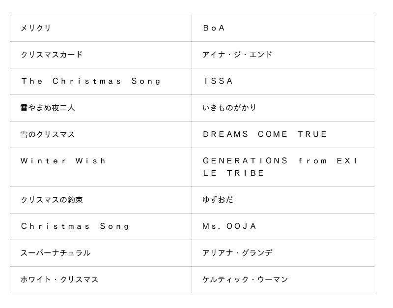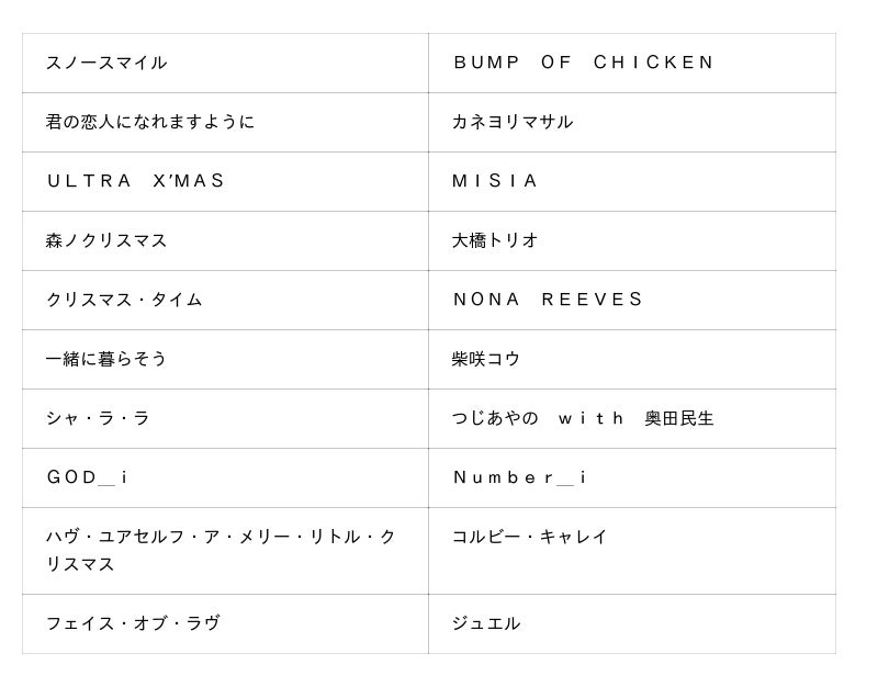 12月1日から12月25日は、“クリスマスのプレイリスト”として、寒い中でもほっと心が温まる、クリスマスの高揚感に寄り添う楽曲を、“朝”・“昼”・“夜”・“深夜”の各時間帯に合わせた選曲でお届けいたします。