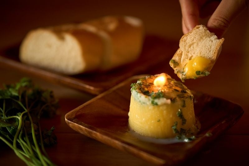 収穫したフレッシュハーブをバターに混ぜ込んで食べるキャンドルを作る体験プログラム「ハーブ香るバターキャンドルづくり」を毎日開催します。BBQのときに、火をつけて溶かしながら、お肉やバゲットにつけてお召し上がりいただけます。