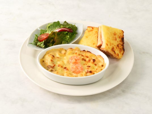 コロンバンの喫茶で半世紀以上変わらない、定番メニューです。クロックムッシュは、ハムとフレッシュトマトを濃厚なチーズソースと共にサンドし、表面にエメンタールチーズをのせて香ばしく焼き上げています。グラタンは、粒ウニを使用した贅沢なホワイトソースのリッチな味わいが自慢の一品です。