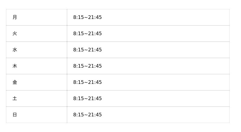 ※オープン時の営業時間となり、変更となっている可能性がございます。