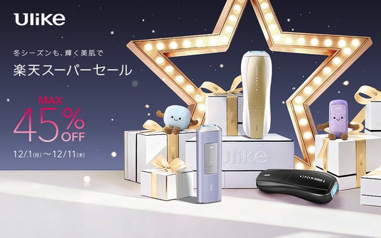 家庭用美容機器メーカー「ユーライクジャパン株式会社」(本社:東京都港区)が展開する、家庭用光美容器3年連続世界No.1(*1)ブランド「Ulike(ユーライク)」は、12月4日(木)20時00分から開催される『楽天スーパーセール』に先行して、ULIKE CARE楽天市場店にて12月1日(月)0時00分よりベストセラーモデルや新発売モデルを、最大40%オフの年間最大割引率で販売いたします。
