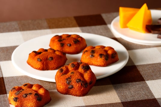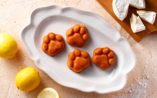 ご好評いただいている肉球型フィナンシェに季節限定フレーバー『チェダーチーズ&ショコラ』 が新登場。コクのあるチェダーチーズ※とチョコチップを生地に混ぜ込み焼き上げました。塩味と甘みがクセになる、しっとり食感の大人フィナンシェ。一口ごとに広がるチーズのコクをお楽しみください。