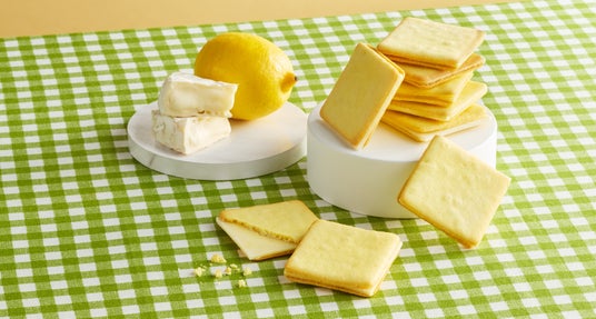 北海道産牛乳とレモンを合わせたクッキー生地に、カマンベールチーズのチョコ※をサンドしたクッキーです。 カマンベールのコクとレモンの爽やかな味わいをお楽しみください。