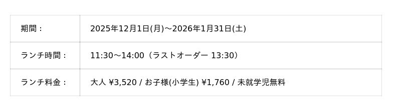 「ノボテル奈良」(所在地:奈良県奈良市)は、2025年12月1日(月)から2026年1月31日(土)までの期間、1階レストラン〈トラットリア・ポンテ奈良〉にて「ウィンターブッフェ」を開催いたします。さらに、2025年12月19日(金)から2026年1月3日(土)までは、