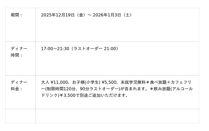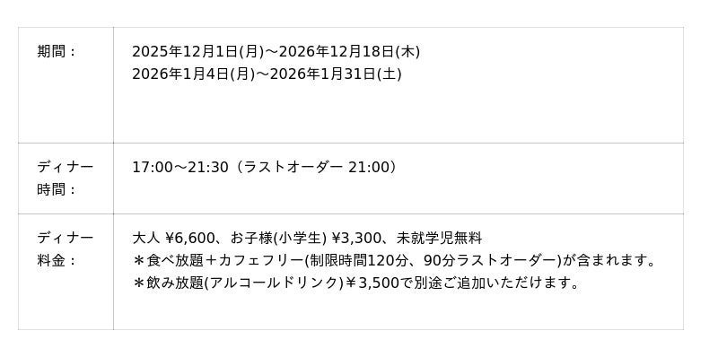 【フェスティブディナーブッフェ 開催概要】