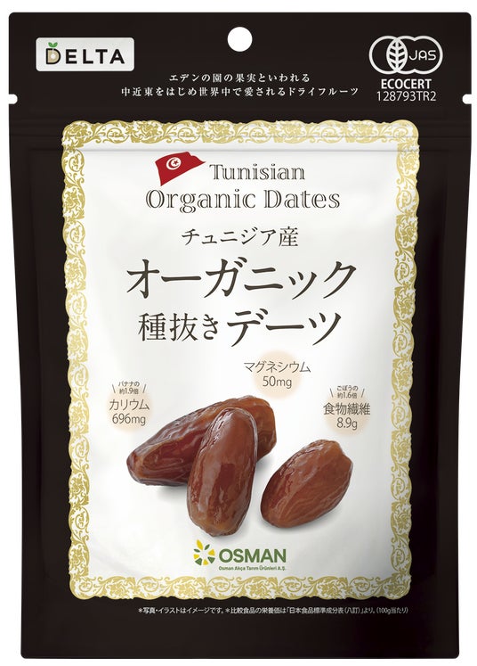 ナッツとドライフルーツの専門商社、株式会社デルタインターナショナル(本社:東京都品川区、代表取締役社長:鳥海 敬)は、2025年12月1日、新商品『チュニジア産オーガニック種抜きデーツ(160g)』を発売いたします。