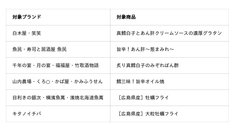*対象商品は期間限定メニューのため、時期により対象商品が変更となります。