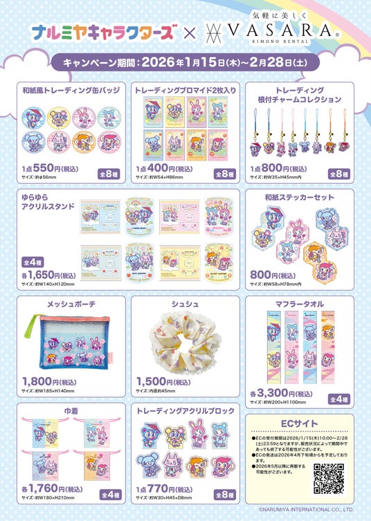 『着物レンタルVASARA』を全国に展開する株式会社バサラホールディングス(本社:東京都千代田区、代表取締役社長:鈴木雄一郎、以下VASARA)は、2026年1月15日(木)~2月28日(土)の期間、株式会社ナルミヤ・インターナショナル(本社:東京都港区、代表取締役社長執行役員:國京紘宇)が展開する平成ガーリーカルチャーを代表する人気ブランドキャラクター“ナルミヤキャラクターズ”とコラボレーションキャンペーンを開催いたします。