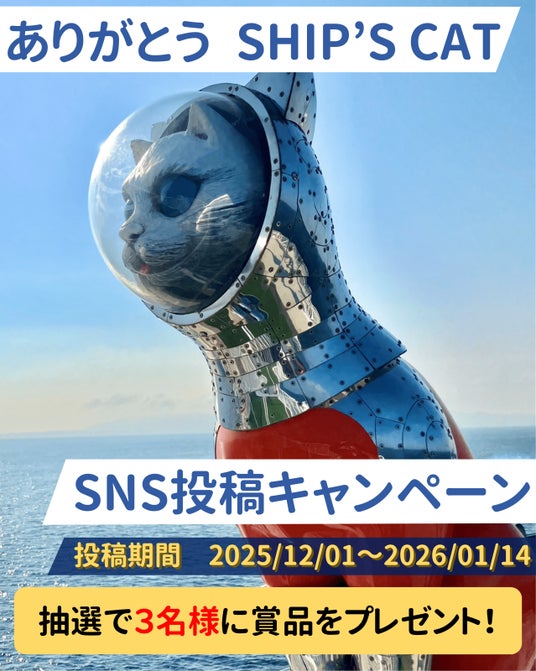 本キャンペーンには、「#ありがとうシップスキャット」および「#ジャンボフェリー」の2つのハッシュタグを付けて、XまたはInstagramに『SHIP’S CAT(Boarding)』の写真を投稿することでご参加いただけます。