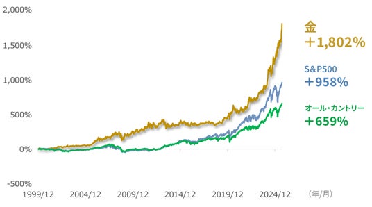金:LBMA金価格、S&P500:S&P500指数(配当込み)、オール・カントリー:MSCIオール・カントリー・ワールド指数(配当込み) 期間:1999年12月31日~2025年9月30日 出所:ブルームバーグ 近年、国際金市場では過去最高の取引価格を記録していますが、過去最高の金取引価格が維持される保証はなく、金の価値が大幅に減少する可能性があります。指数には直接投資することはできず、取引コストや流動性等の市場要因なども考慮されておりませんので、実際の取引結果とは異なります。上記は過去のデータであり、将来の結果を示唆あるいは保証するものではありません。