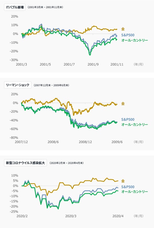 ポイント3. 景気後退時に示された、金がもたらす分散効果