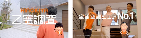 ヒノキヤグループの住宅展示場を訪れたオードリーの2人は、営業社員の案内のもと、掛け合いを交えながら『Z空調』の魅力と実力を検証します。持ちネタの「カスカスダンス」ならぬ「コスコスダンス」を披露したり、あまりの快適さに予想外の場所でくつろぎはじめたりと終始マイペースな春日さんに対し、先輩調査員として冷静にツッコミを入れる若林さん。家中の室温を通年で一定に保ちつつ電気代を抑えられる『Z空調』の経済的な魅力を、”家ロケ番組″さながらにオードリーならではのユーモアを交えて紹介する作品に仕上がりました。