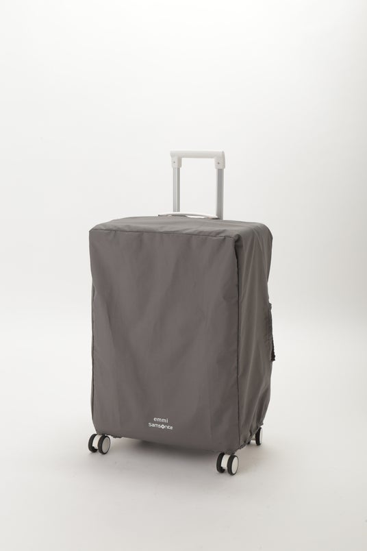 ラゲッジカバーが全サイズに付属し、預け時も安心です。ダークグレーのカラーにダブルネーム入り。