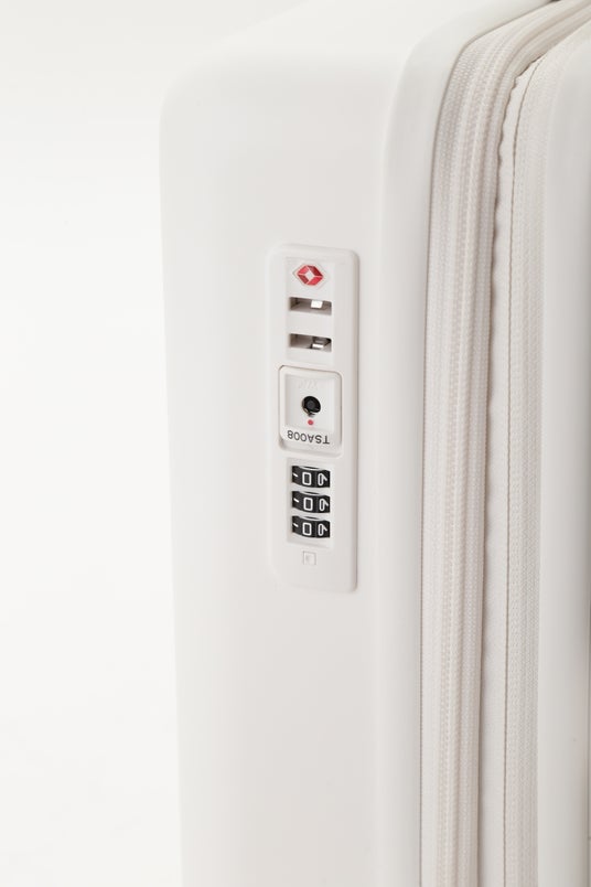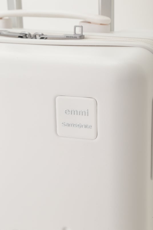 emmiとサムソナイトのスペシャルコラボレーション。emmiのブランドコンセプトである”クリアモード”を表現するような、極限までマットな質感にこだわりぬいたマットホワイトの洗練されたミニマルな外観が特徴なシェルボディ。シェル部分は、使用済みPETボトルからつくられたリサイクルポリカーボネートを50%以上使用しています。フロントには立体的なemmiロゴ、emmi×Samsoniteのダブルネームロゴのプレートがデザインされています。旅のストレスを軽減する、考え抜かれた機能とアクセサリーが満載です。