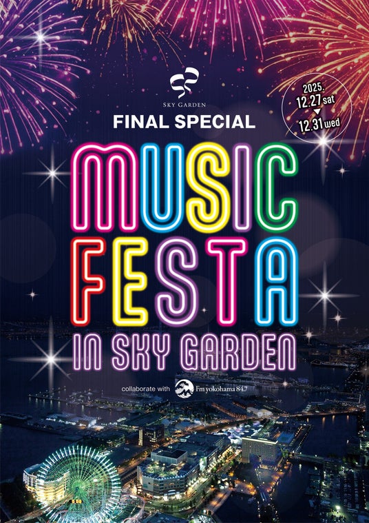 横浜ランドマークタワー69階展望フロア スカイガーデン(神奈川県横浜市/運営:三菱地所プロパティマネジメント株式会社)は、スカイガーデンFINAL SPECIALとなる「SKY GARDEN × Fm yokohama 84.7 MUSIC FESTA IN SKY GARDEN」を、2025年12月27日(土)~12月31日(水)に開催いたします。