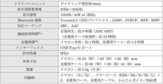 ・XXSを含めた5サイズのオリジナルイヤーピースを同梱