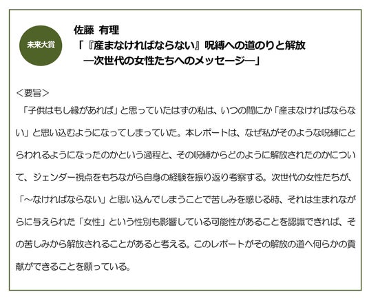 「第8回 日本女性学習財団 未来大賞」受賞レポート要旨