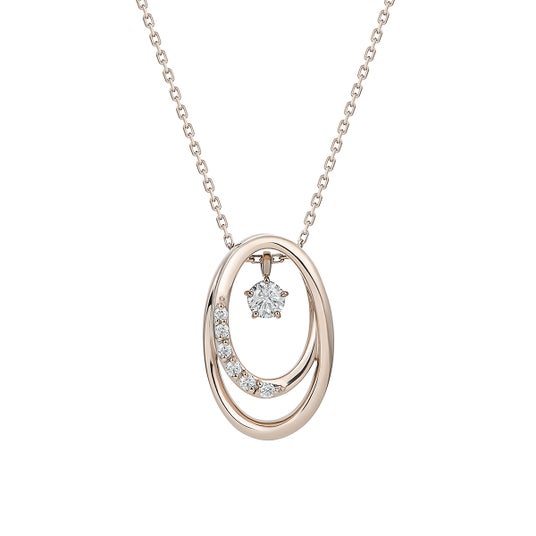 「Sheer Rose」のコレクションでは、canal 4℃で初めて採用されたピンクシルバーを使用。黄金比率のオーバルモチーフが重なり生まれた、静かな強さを秘めたシリーズです。目立ちすぎないけれど、ふと目を奪われる。やわらかさの中に意志を宿すデザインは、まさに“私らしさ”を映すジュエリー。センターには、まばゆい煌めきを放つモアサナイトが配され、その透明な光が、胸の奥にそっと自信を灯してくれます。